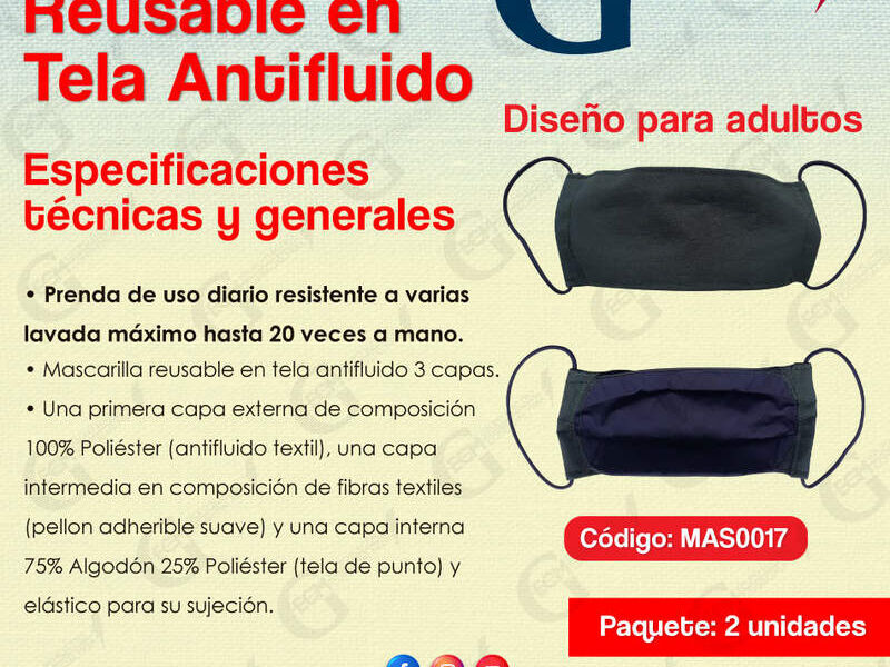 Mascarilla Antifluido 2 capas reusable