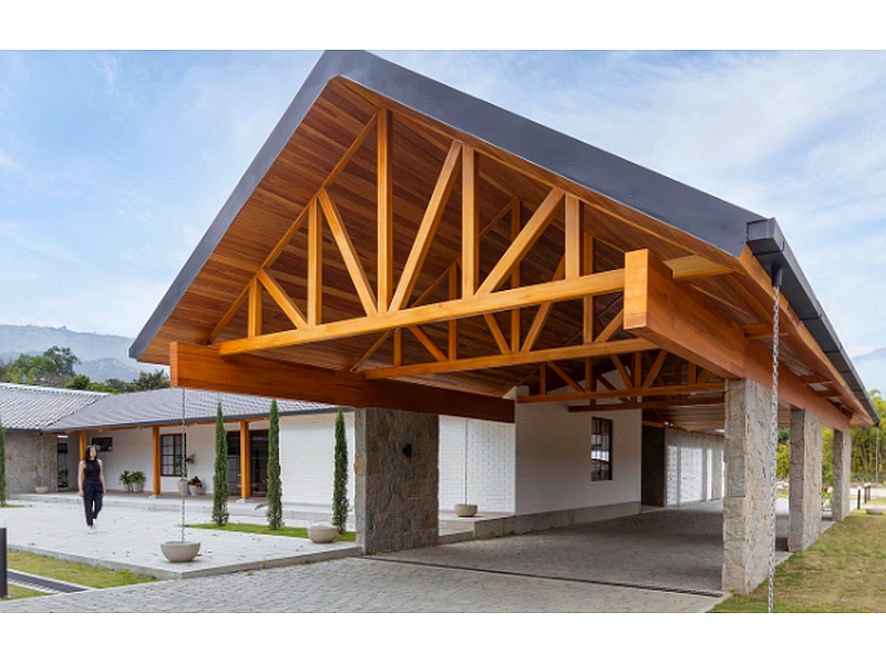 Construida con materiales naturales como madera y piedra, con un diseño que recuerda a las cabañas de montaña. Se caracteriza por un ambiente acogedor, techos inclinados y chimeneas grandes.