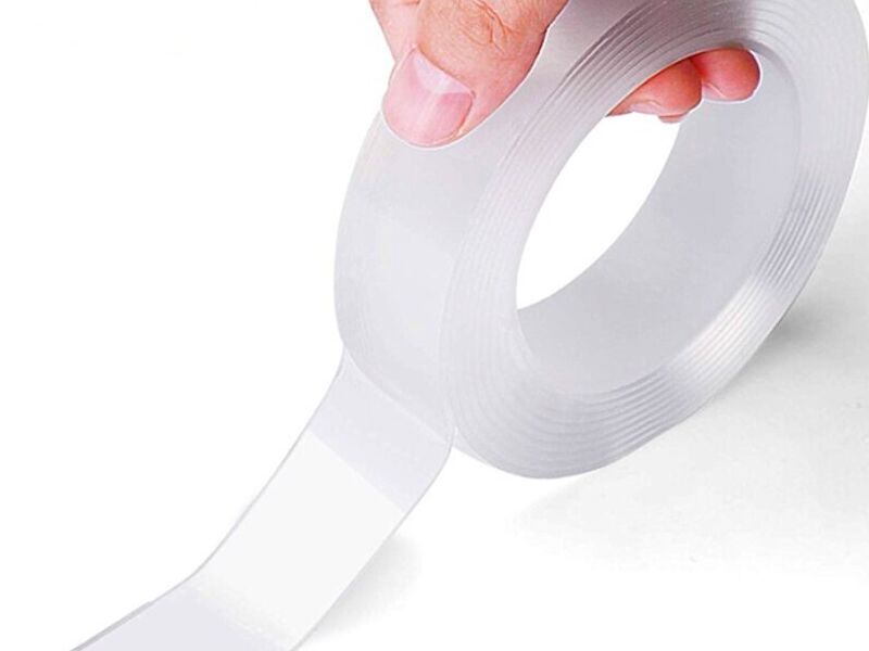 Cinta adhesiva que tiene adhesivo en ambos lados, utilizada para unir materiales como papel, plástico, madera y metal de manera temporal o permanente.