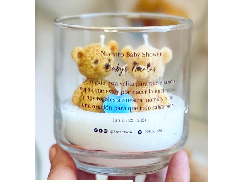 Vela con 2 ositos en un frasco de vidrio