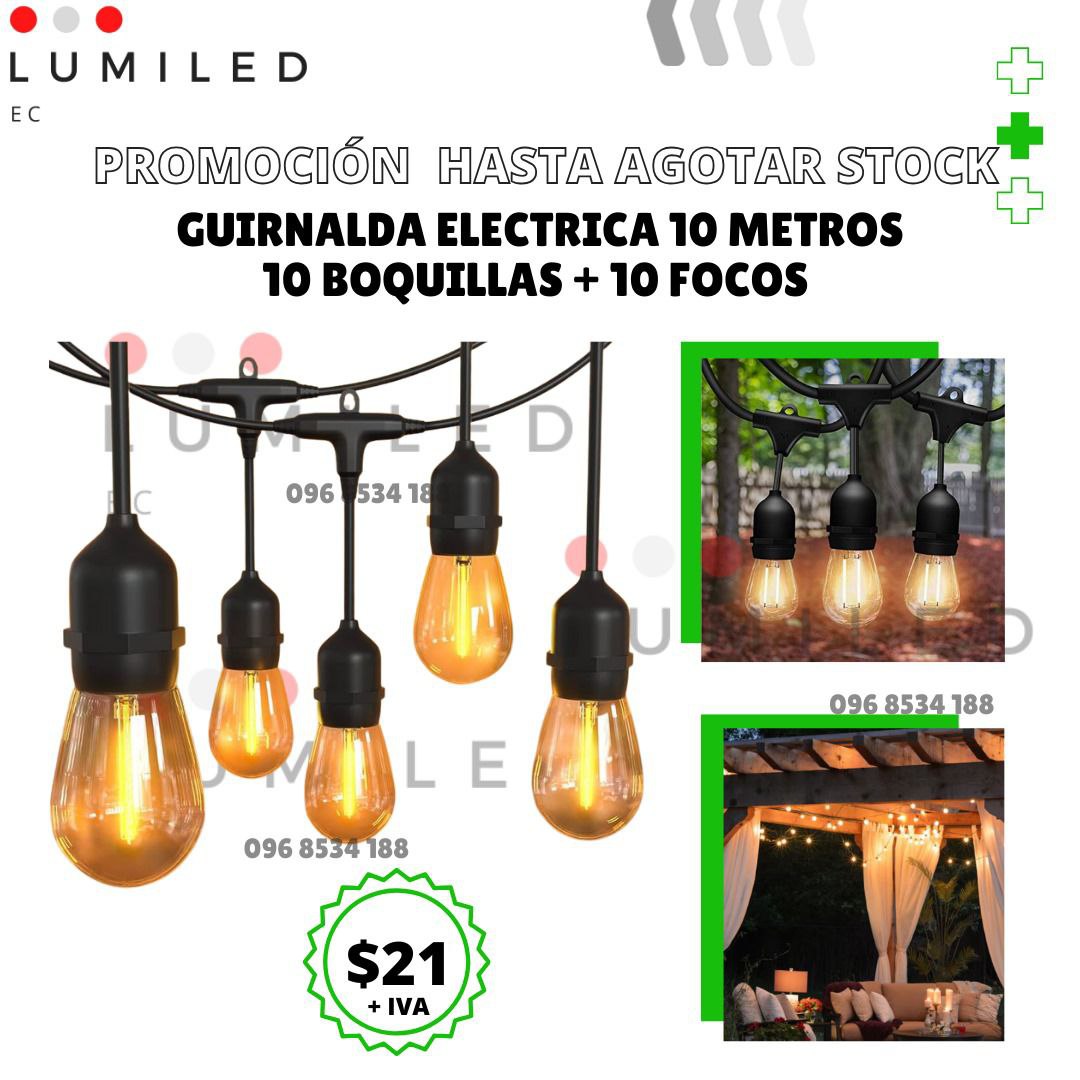 GUIRNALDA ELECTRICA 10 METROS 10 BOQUILLAS + 10 FOCOS