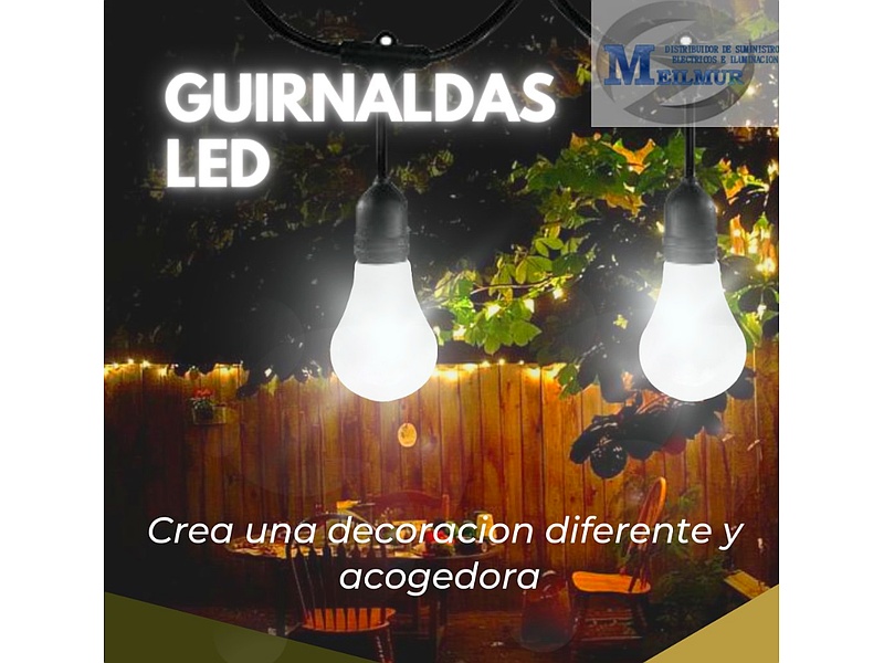 Las guirnaldas LED de Meilmur Iluminación son la opción perfecta para añadir un toque festivo y encantador a cualquier ocasión. Diseñadas para proporcionar una iluminación vibrante y continua, estas guirnaldas son ideales para decorar interiores y exteriores, desde fiestas y eventos hasta celebraciones navideñas y bodas. Su tecnología LED garantiza una larga duración y un bajo consumo energético, manteniendo sus espacios iluminados con un impacto mínimo en su factura eléctrica. Disponibles en una variedad de colores y estilos, las guirnaldas LED ofrecen versatilidad en la decoración, permitiendo crear ambientes cálidos y acogedores con facilidad. Aportan un brillo alegre y atractivo, transformando cualquier espacio en un lugar festivo y acogedor.