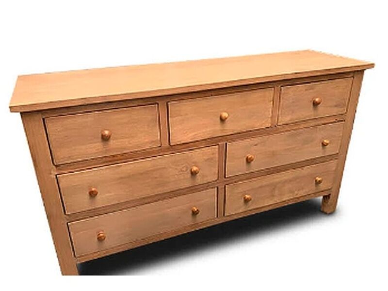 Cómoda de poca altura por lo que su tamaño la hace ideal como Rack de televisión. Estructura en lenga laterales y cubierta en lenga. Cajones enchape en lenga. Tirador de bolita de madera.