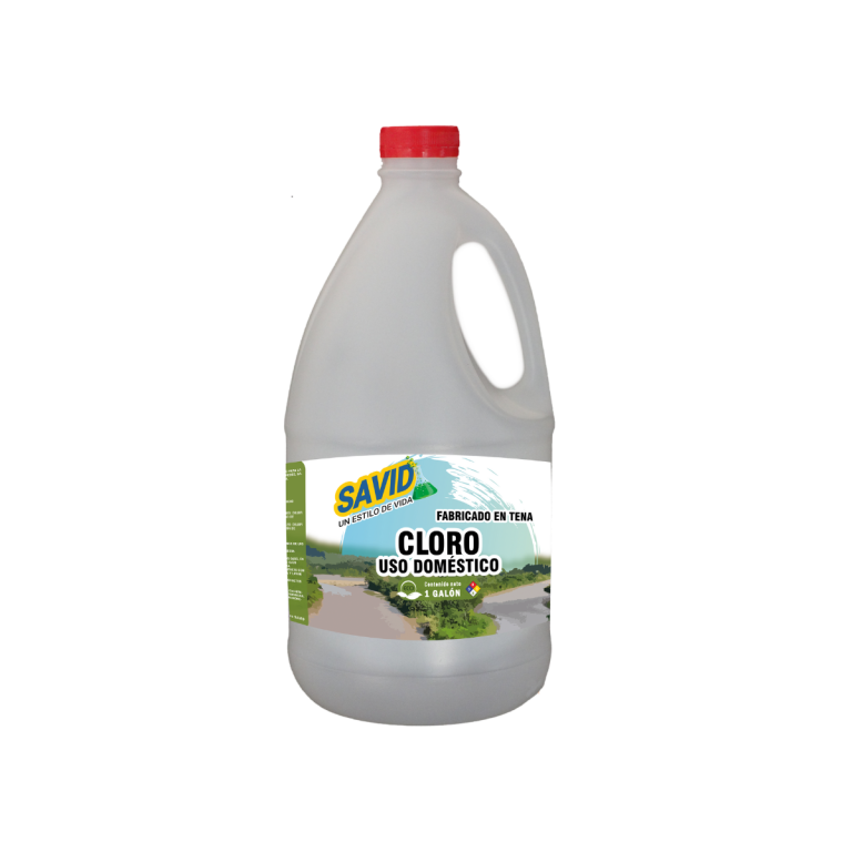 Cloro para uso doméstico disponible en presentaciones de litro, galón y caneca.