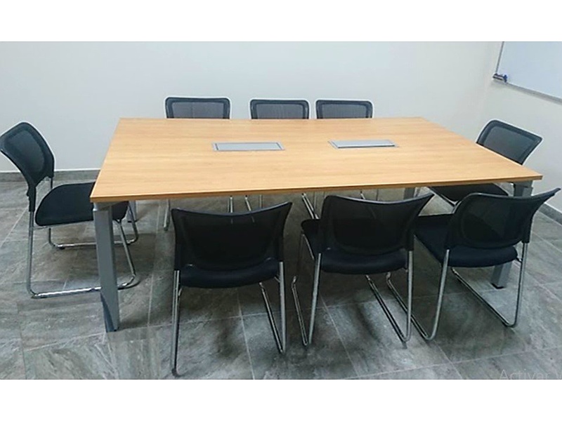 Eleva el estilo de tu sala de reuniones con esta mesa de conferencias de madera, ideal para oficinas modernas y tradicionales.